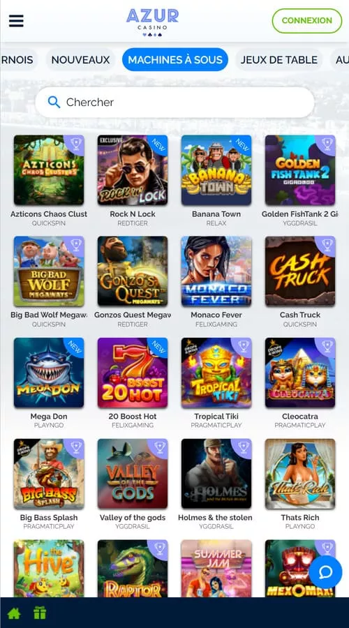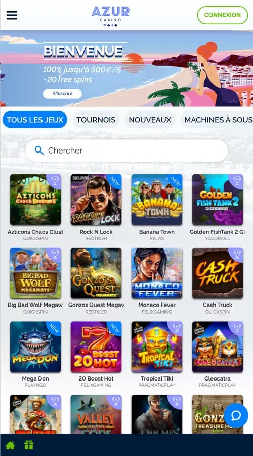 Le casino Azur app est votre fidèle compagnon de jeux. Peu importe l’endroit où vous allez avec votre téléphone. Les jeux disponibles sur la plateforme de ce site sont parfaitement compatibles aussi bien aux appareils Android qu’aux appareils iOS. La grande variété de jeux s’affiche avec harmonie sur l’interface de l’application.