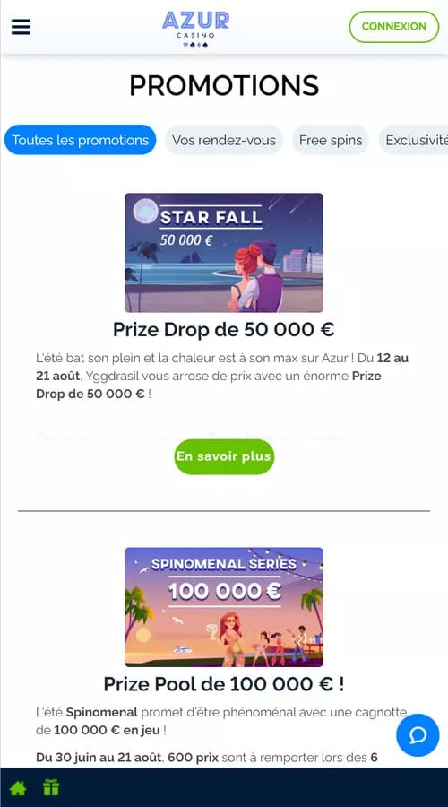 Est-ce la même chose du côté de son app mobile? Entre l’application casino Azur et l’Azur casino mobile, lequel vous ira le mieux? La réponse dans la suite de cet avis casino Azur.