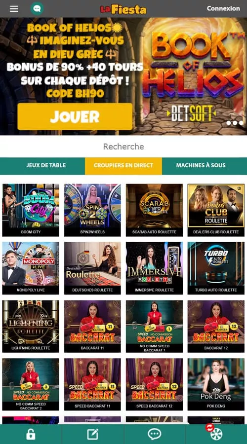 Le jeu live s’est considérablement développé dans les casinos virtuels ces dernières années. Sur La Fiesta, vous pourriez aux jeux de croupiers en direct sans besoin de téléchargement. Ici non, une La Fiesta Casino poker app ne sera pas nécessaire.