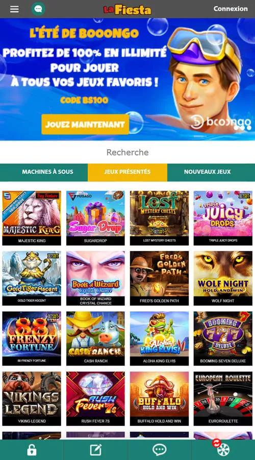 A la place, La Fiesta Casino France a fait développer une version entièrement mobile de son site web. Vous pouvez y accéder peu importe le système d’utilisation que vous utilisez. La Fiesta CasinoAndroid et La FiestaCasino iOS vous accueilleront que vous ayez respectivement un téléphone sous Android ou un iPhone.