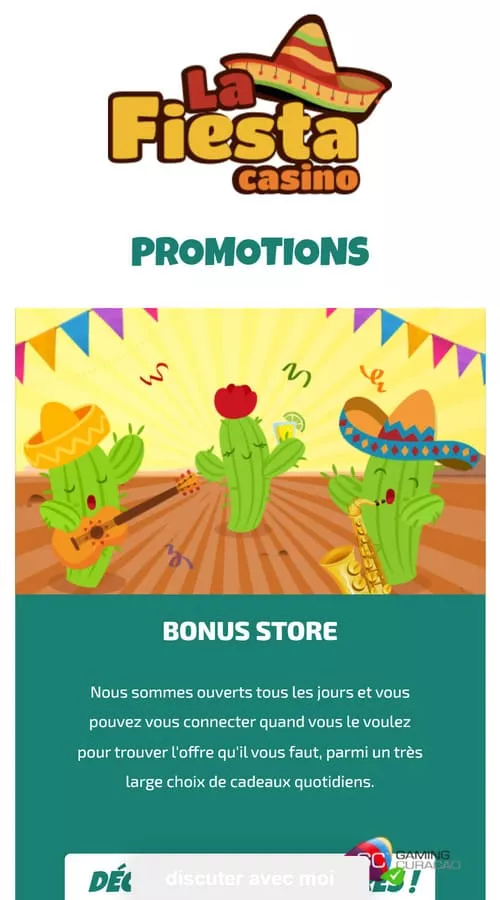 Plein d’autres bonus, telles que les offres journalières, hebdomadaires ou mensuelles vous attendent sur le site mobile qui fait office de La Fiesta Casino casino application.