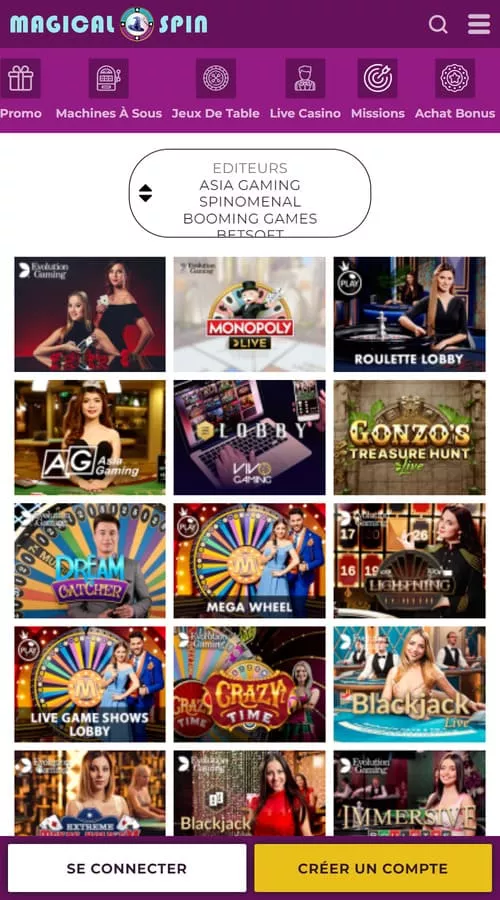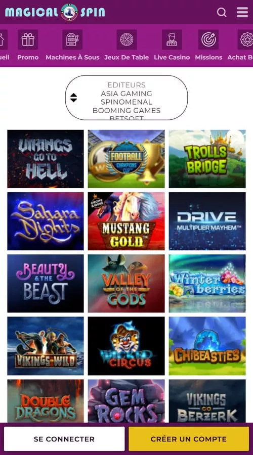 En étendant sa magie sur le net, le Magical spin Android app est composé d’une interface de jeux basée sur le thème de la sorcellerie. Parfaitement compatible au système d’exploitation Android, elle intègre plus de 3000 jeux, un étonnant pack de bonus casino Magical spin, ainsi qu’un support client hors pair.