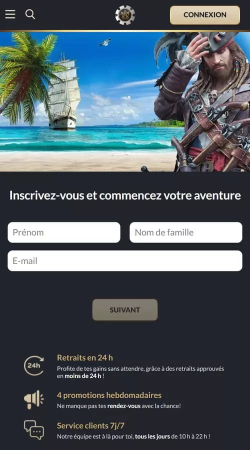 Êtes-vous prêt à faire partie de l’équipage mobile du casino Tortuga? À coup sûr, oui. Pour ce faire, vous devrez télécharger l’app et passer l’étape de l’inscription. Comment s’y prendre? La réponse dans la suite de cet avis casino Tortuga.