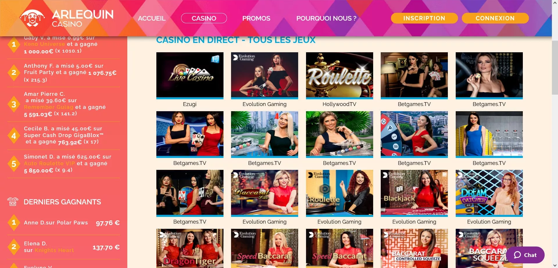 Le casino live avec Arlequin Casino