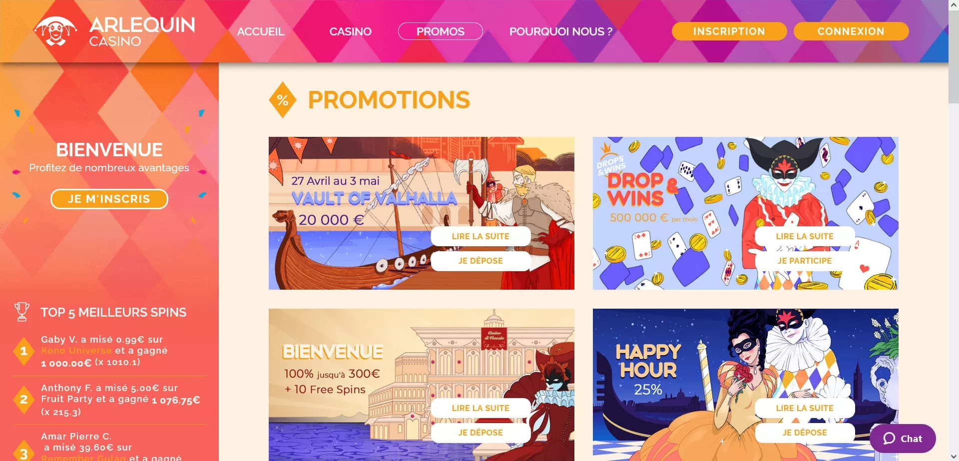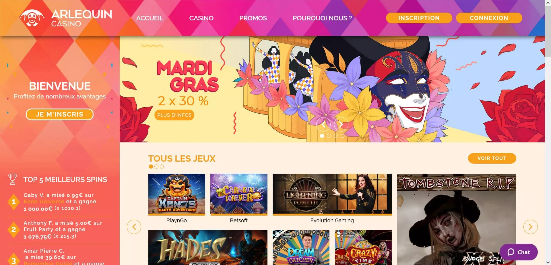 Arlequin Casino est une plateforme de jeux qui ambitionne offrir aux joueurs un cadre de jeu attrayant, sécurisé et équitable. Avec une ludothèque bien fournie où on retrouve une multitude de jeux, il laisse à ses clients une grande largesse dans le choix des jeux. Avec son design unique, majoritairement dominé par des couleurs vives, le Casino Arlequin présente une interface qu’on peut facilement qualifier d’utilisable, tant il est aisé de s’y retrouver et agréable à observer. Dans cette revue, nous vous présentons cet opérateur: les jeux casino qui y sont disponibles, les bonus et promotions, les moyens de paiement et tout ce qu’il y à savoir sur ce dernier et qui le rend différent de tous les autres présents dans le secteur.