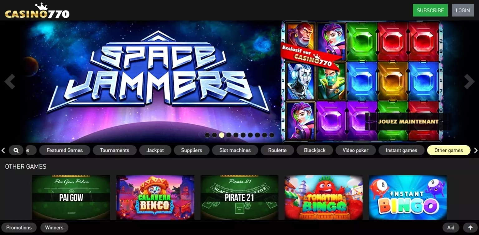 Сasino 770 est une institution active dans le domaine des jeux de casino en ligne et fait partie des principaux acteurs de ce secteur depuis plus de 10 ans. Le site propose depuis des années une technologie de pointe et un style de jeu innovant, ce qui lui a permis de gagner en popularité et en réputation sur le marché européen réglementé. L’offre de jeux en constante augmentation attire de nombreuses personnes: que ce soit la roulette, le poker, le blackjack ou les machines à sous, Casino770 en ligne propose plus de 350 jeux, ce qui explique sa popularité.