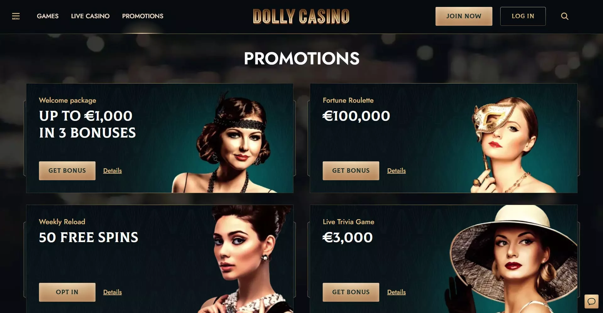 Dolly propose un large choix de bonus pour ses joueurs, tant pour les nouveaux inscrits que pour les habitués. Le pack de bienvenue comprend des bonus attractifs répartis sur les 3 premiers dépôts, tandis que les promotions régulières, le cashback et les tournois offrent de nombreuses occasions d’augmenter votre bankroll.