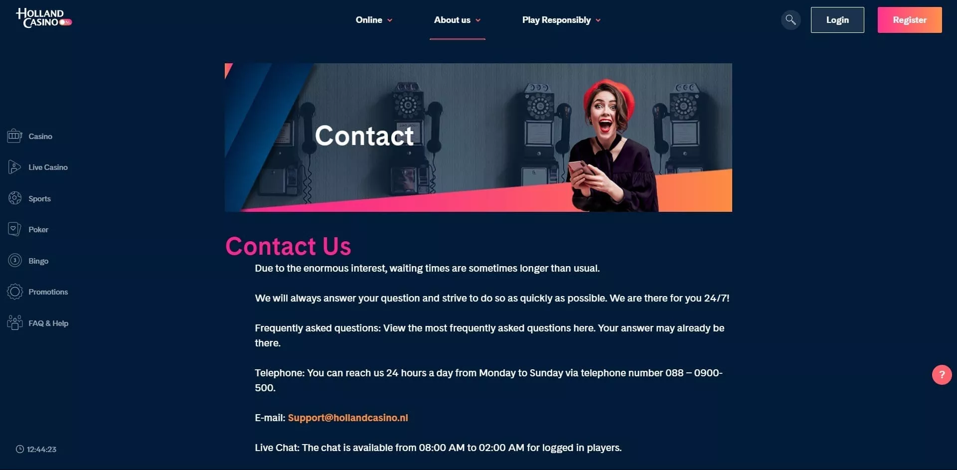 Un service client disponible depuis plusieurs canaux (téléphone casino Holland)