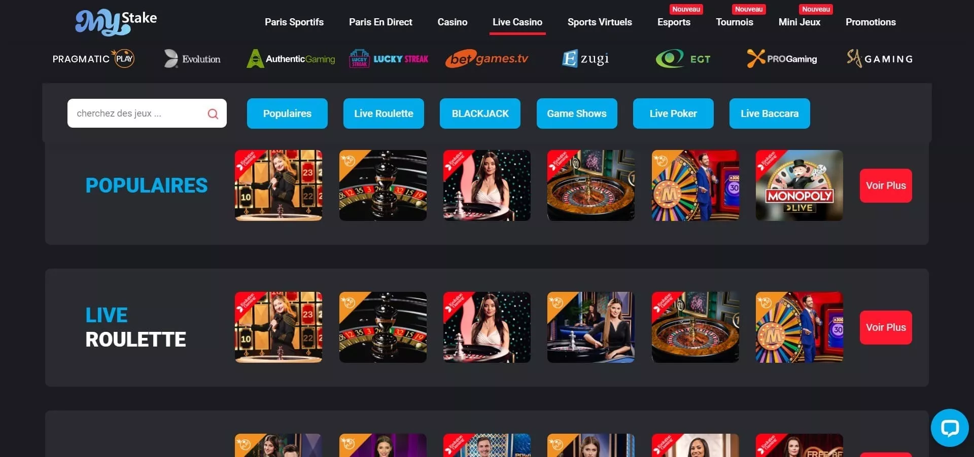 Bien que la bibliothèque des machines à sous soit une sorte de carte de visite pour chaque casino en ligne, le reste des jeux est également important, car un grand nombre d’utilisateurs de casinos en ligne s’intéressent à des jeux comme le Blackjack, le Baccarat, le Poker, et plus encore. Mystake a tout ce que vous pourriez vouloir voir dans la section des jeux. Le casino en direct est une toute autre direction de jeux. Les partenaires de Mystake sont les meilleurs fournisseurs de casino en direct comme Evolution Gaming, Betgames. Tv, PG soft, et plus encore. Le casino en direct de Mystake est associé à une traduction vidéo de haute qualité et à des croupiers qualifiés et expérimentés afin que les joueurs aient l’impression d’être dans un casino terrestre. Il est également possible d’obtenir un service VIP pour le confort et l’intimité de l’utilisateur. En outre, Mystake propose des jeux de grattage populaires comme Lucky Numbers, Wish upon a jackpot, etc. La ludothèque est constamment mise à jour afin que les utilisateurs de Mystake soient toujours au courant des changements et des développements de l’industrie.