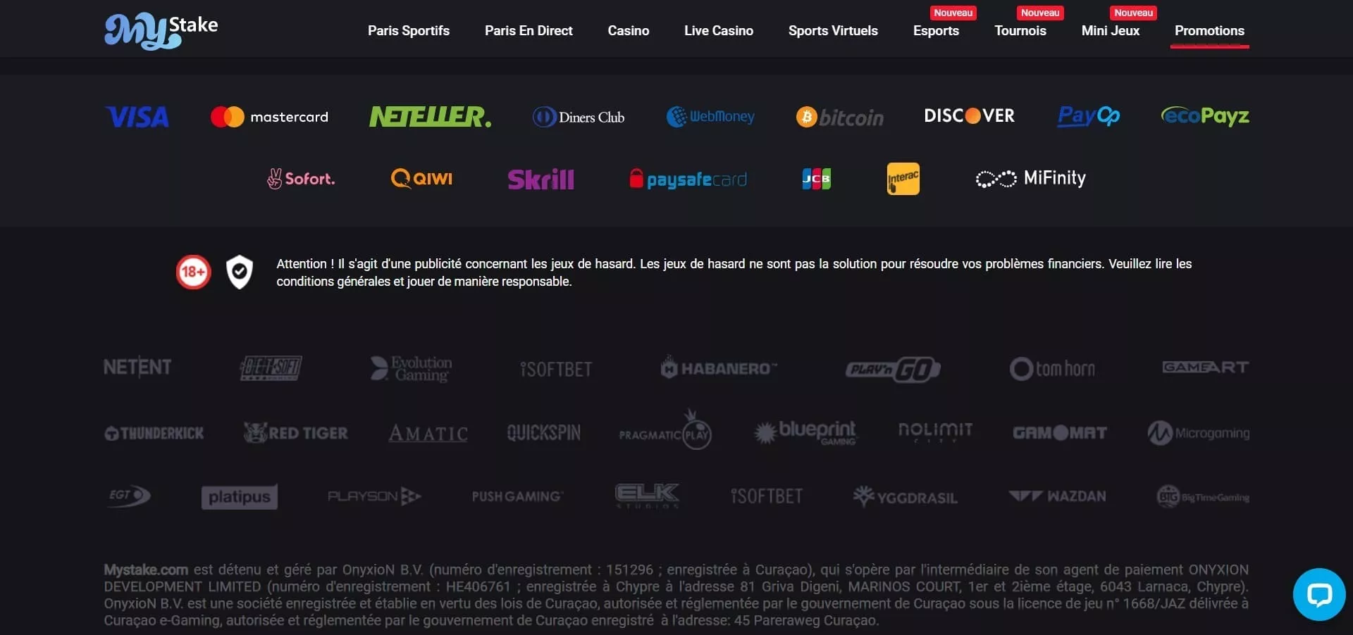 Mystake fournit des méthodes de paiement sécurisées et sûres à ses joueurs. La marque prend soin des informations privées des joueurs et garantit un environnement de jeu responsable.