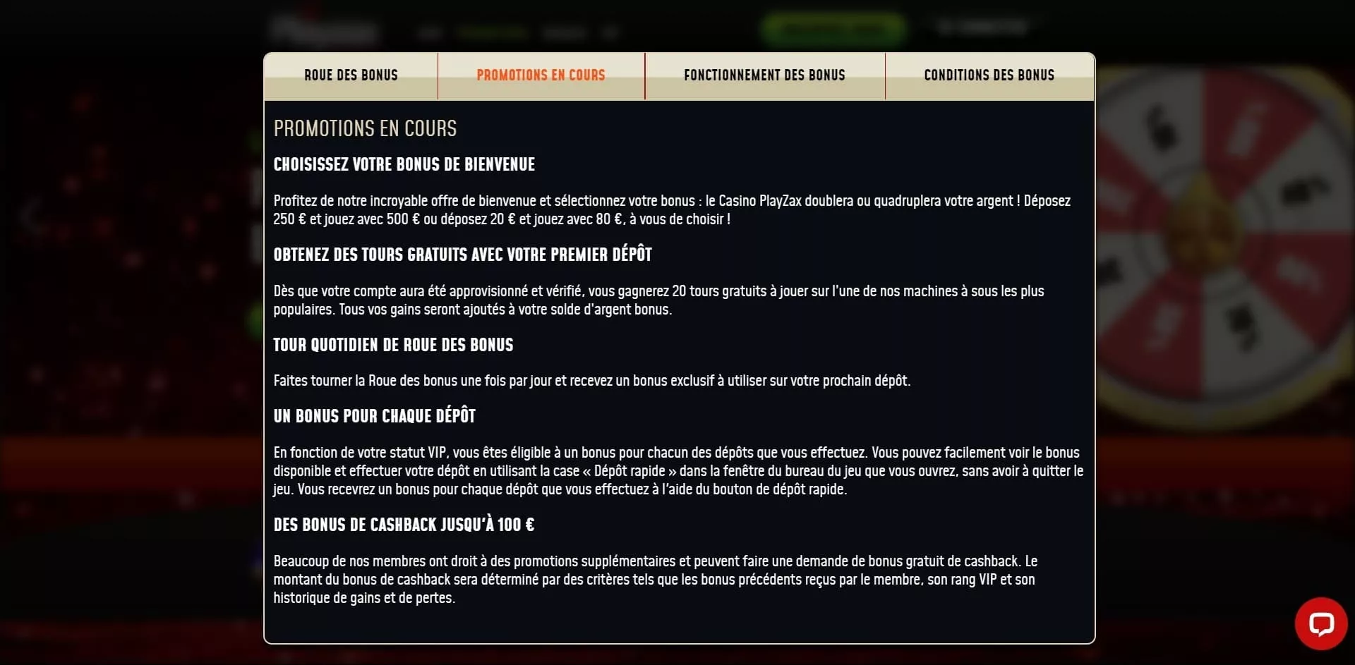 Existe-t-il un bonus sans dépôts sur le Playzax Casino FR?