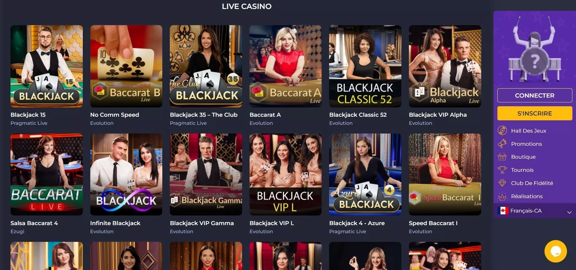 Dès que vous atterrissez dans votre compte ou le lobby du casino, toutes ces catégories de jeu de casino en ligne sont visibles dès le haut de la page d’accueil. D’autres catégories ou regroupements de jeu sont également accessibles :