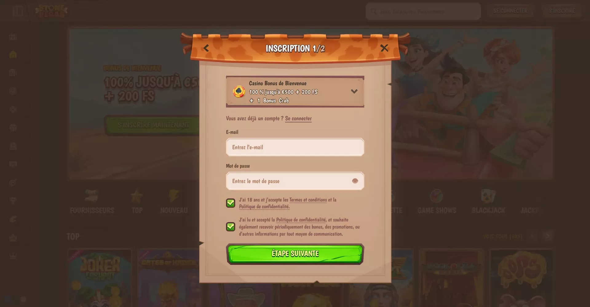 Tout d’abord, il faut créer un compte sur le casino en ligne StoneVegas. En haut, vous verrez le bouton «Se connecter». Cliquez dessus et saisissez vos informations.