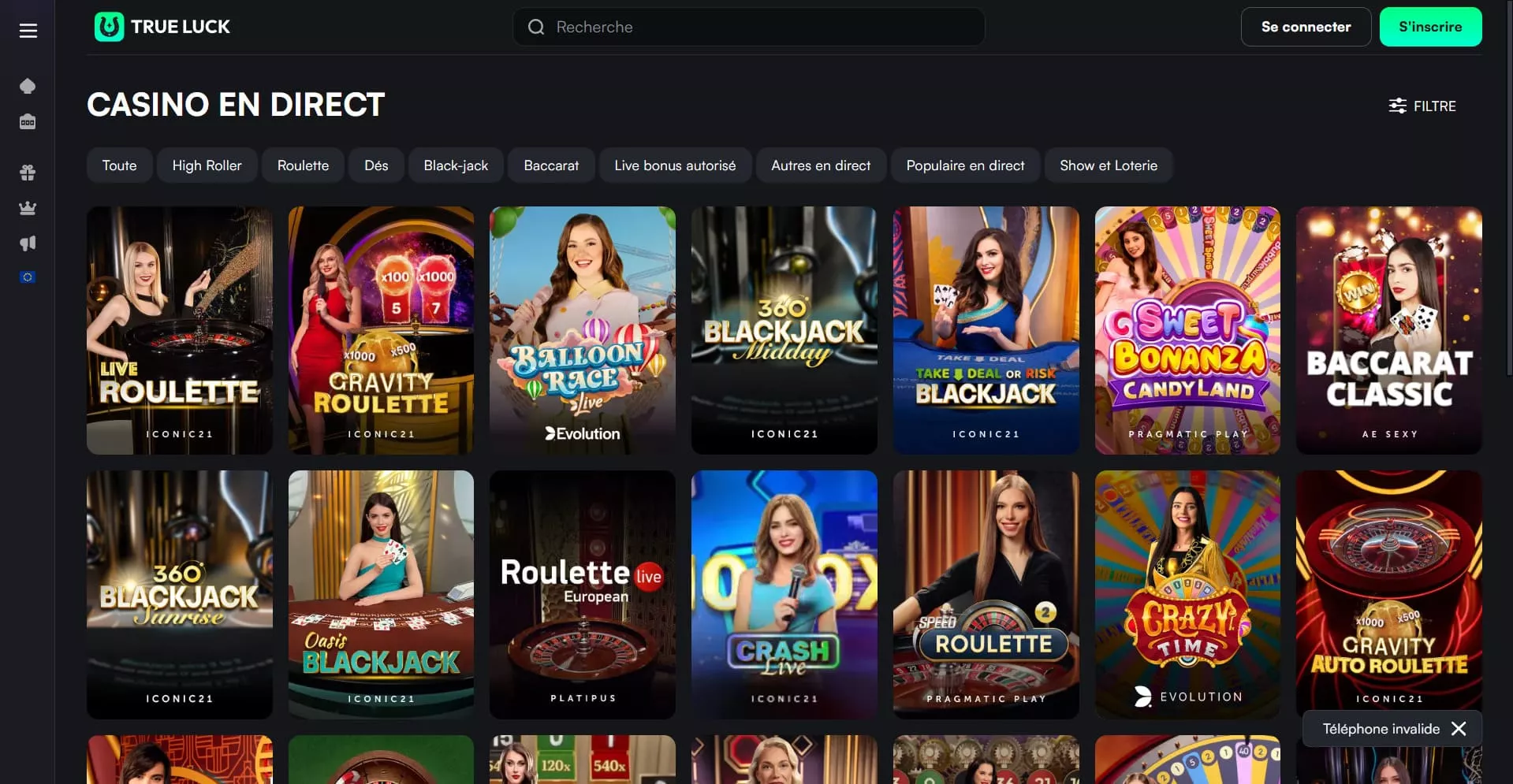 Au casino TrueLuck, les joueurs en France peuvent découvrir une bibliothèque variée de plus de 6 000 jeux de haute qualité. Des jeux de table classiques tels que le blackjack et la roulette aux machines à sous vidéo les plus modernes et aux jackpots progressifs, vous trouverez tout ce dont vous avez besoin pour rendre votre expérience de jeu au casino TrueLuck inoubliable.