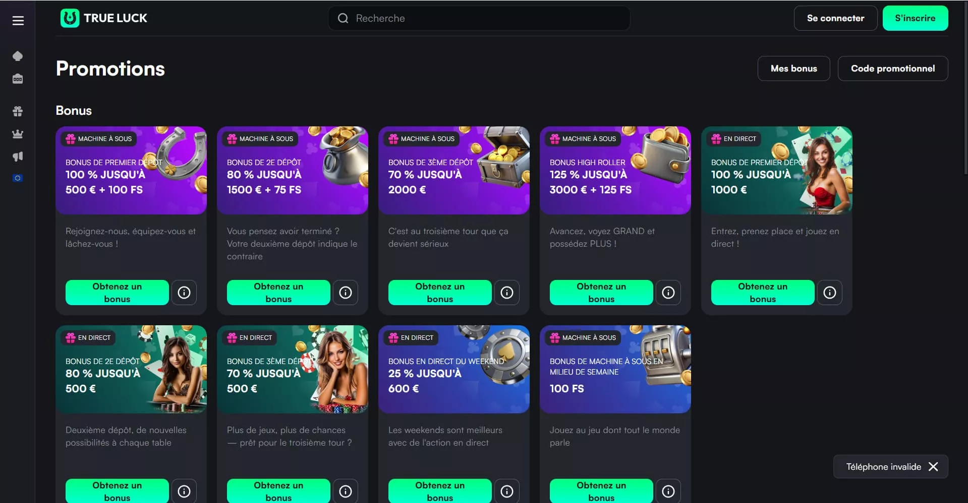 Nos experts ont analysé en détail les bonus de TrueLuck en 2026. Actuellement, pas moins de 9 bonus sont disponibles, conçus pour les nouveaux joueurs et les joueurs réguliers. En voici quelques-uns: