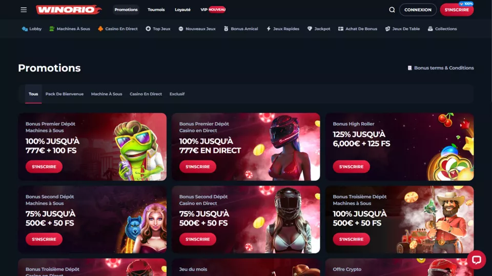Le bonus au casino Winorio en 2026 de bienvenue pour le premier dépôt est de 100 % jusqu’à 777 €, plus 100 tours gratuits pour les machines à sous.