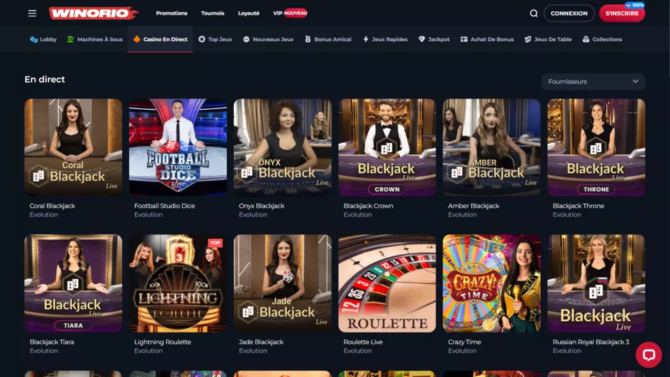 Jeux en direct avec croupiers professionnels.