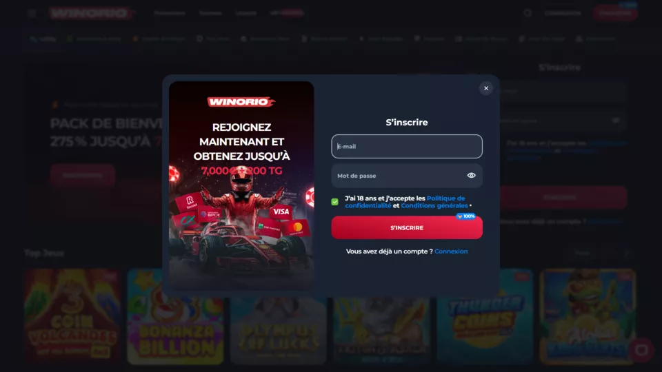 Pour vous connecter, rendez-vous sur le site officiel de Winorio et cliquez sur le bouton « Connexion » en haut à droite. Saisissez l’adresse e-mail et le mot de passe indiqués lors de votre inscription. En cas de problème d’accès, vous pouvez utiliser la fonction de récupération de mot de passe ou contacter l’assistance.